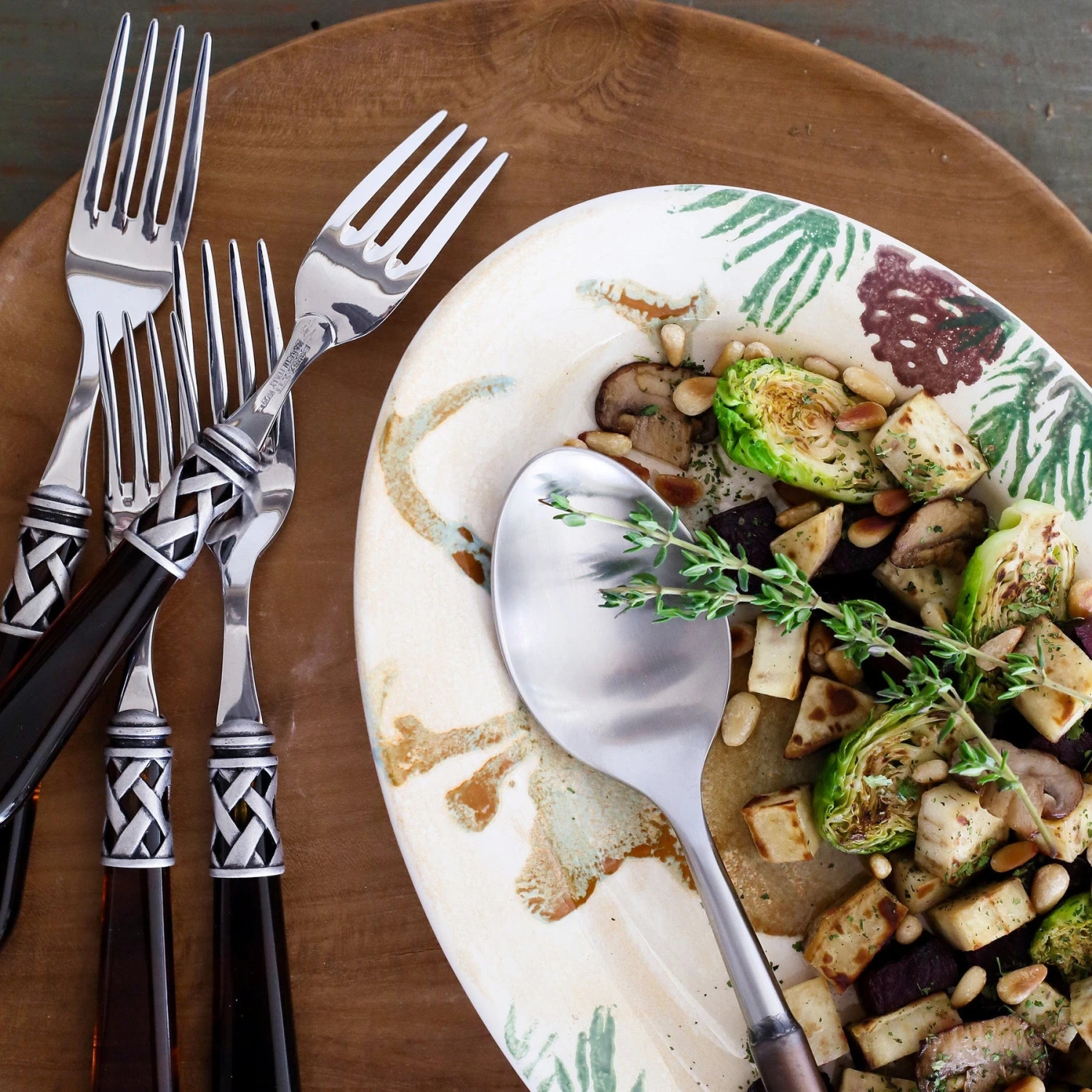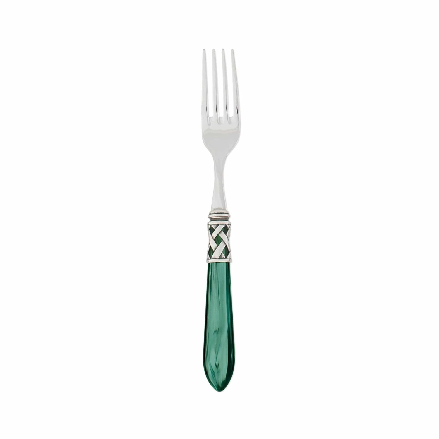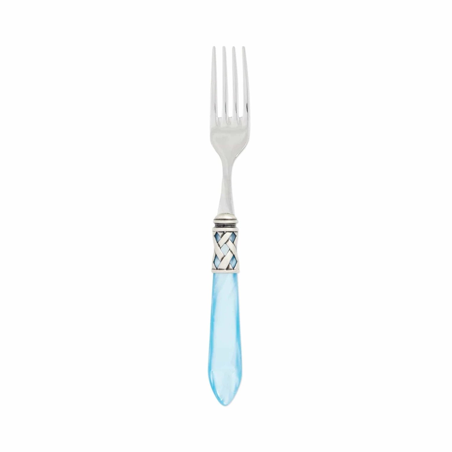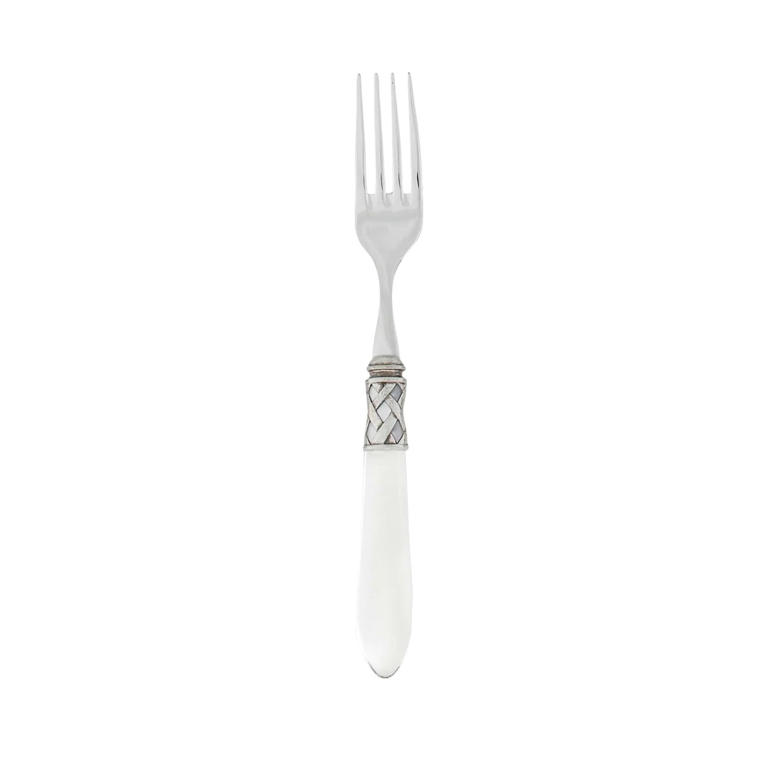 The Aladdin Antique Place Fork features elegant pearlized handles with the strength of high-grade acrylic and 18/10 stainless steel. This piece is also available in our brilliant finish.