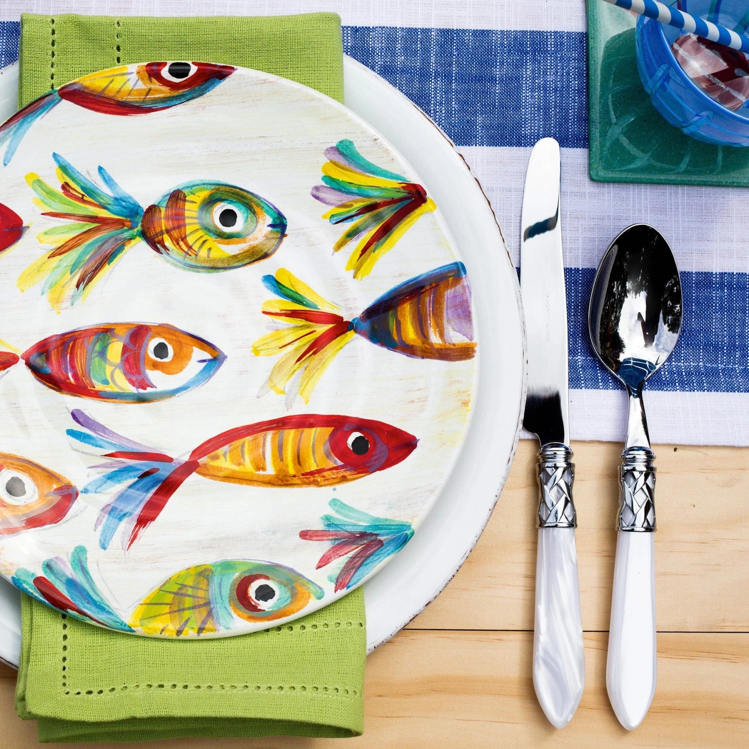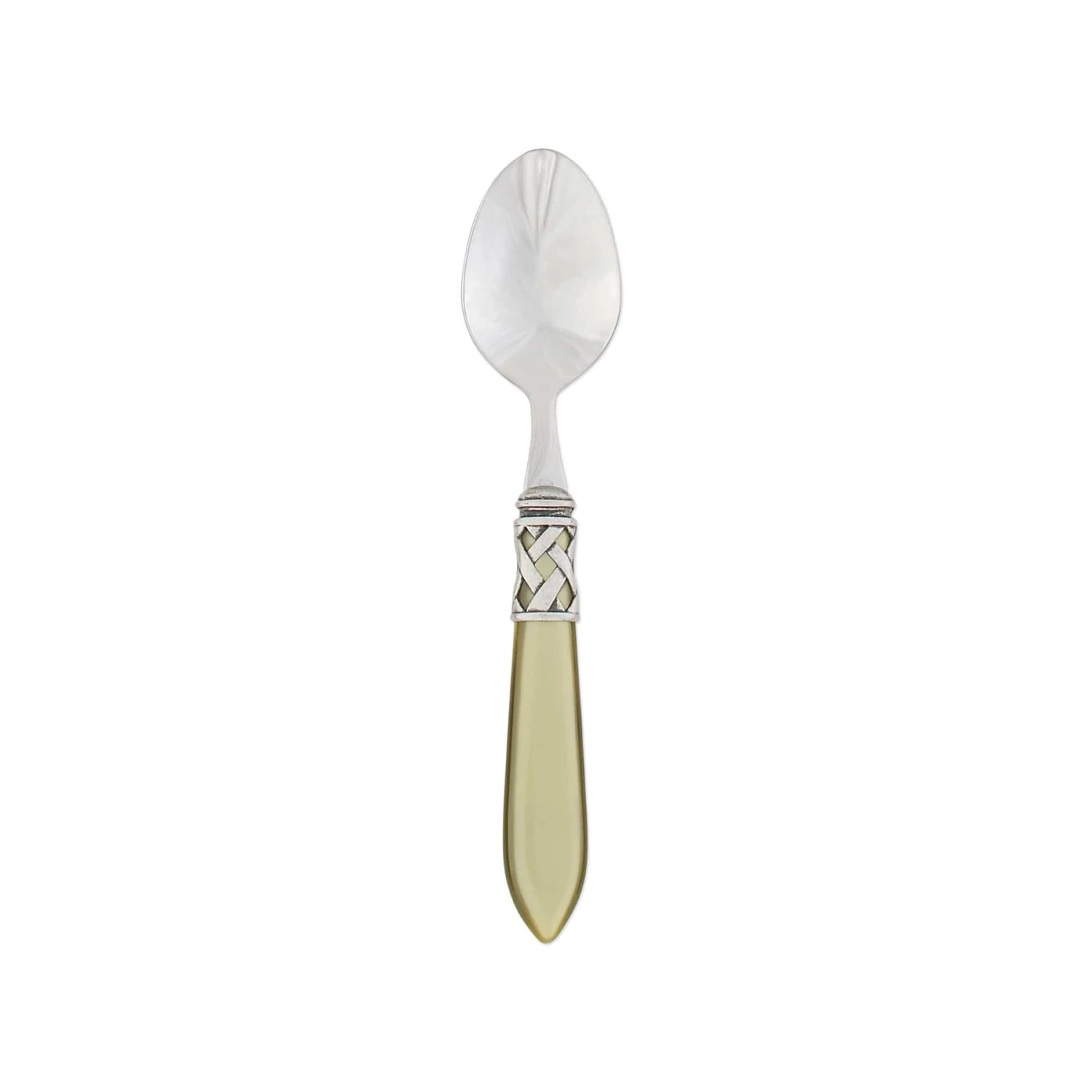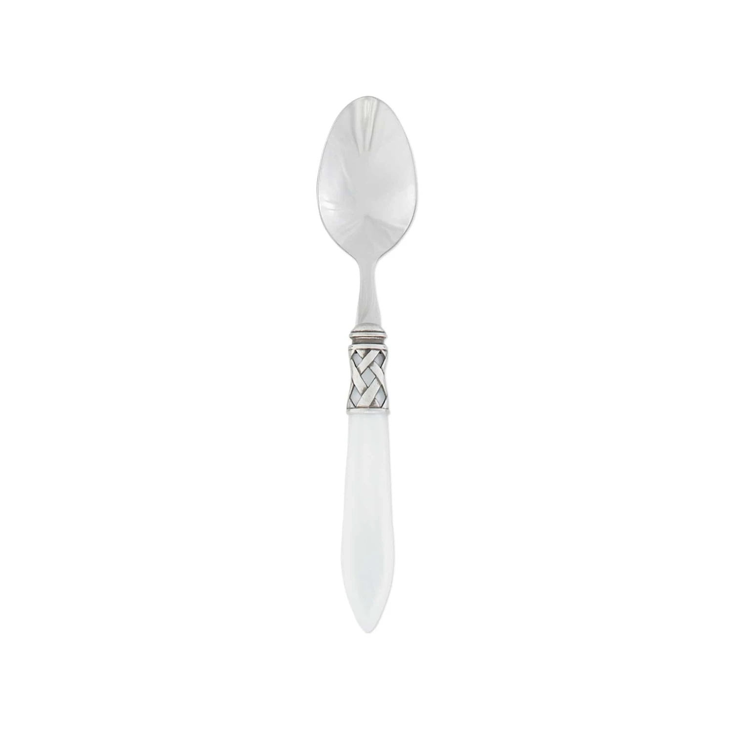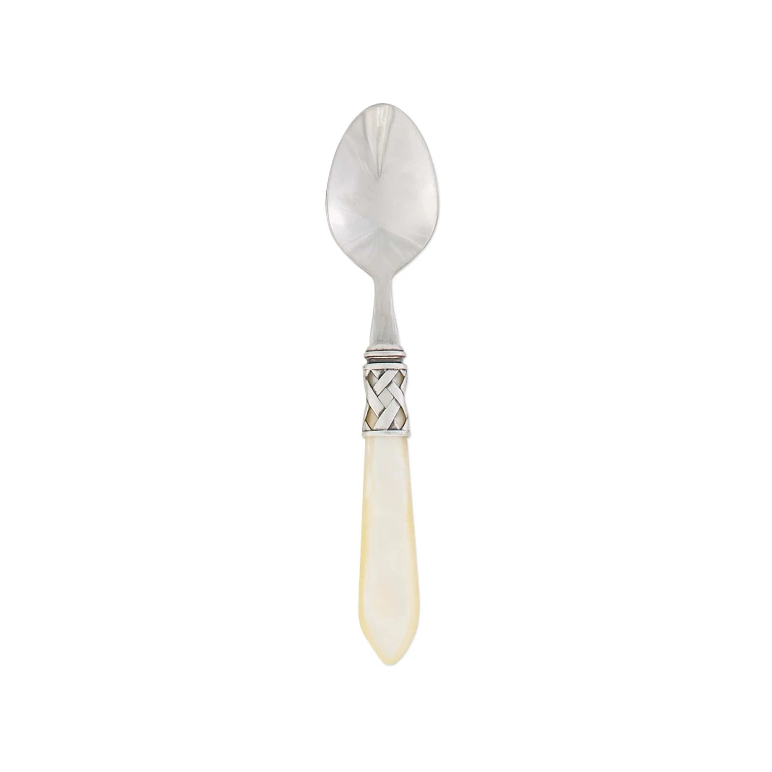 The Aladdin Antique Place Spoon features elegant pearlized handles with the strength of high-grade acrylic and 18/10 stainless steel. This piece is also available in our brilliant finish.