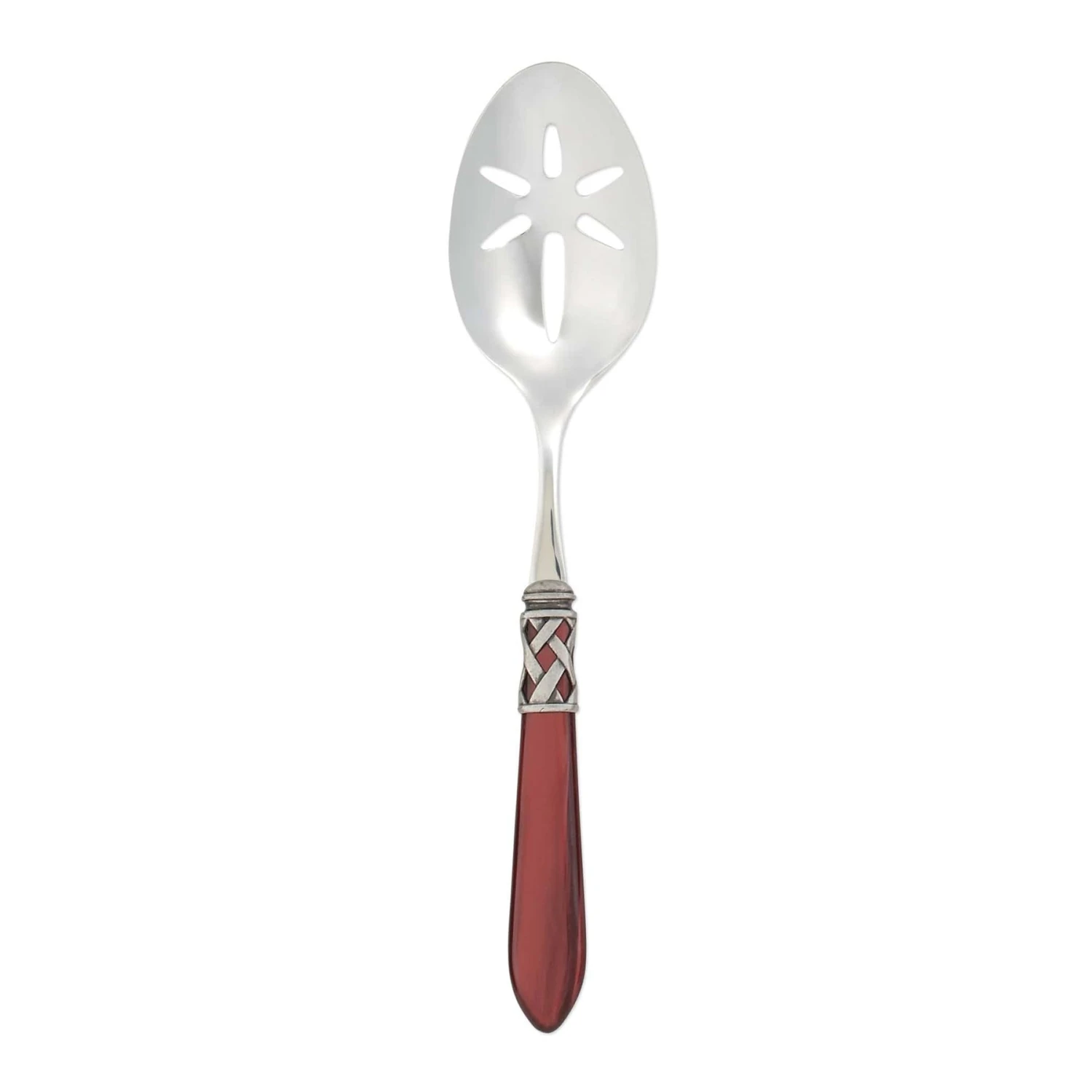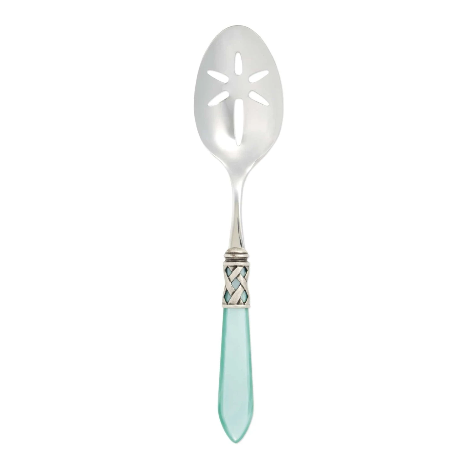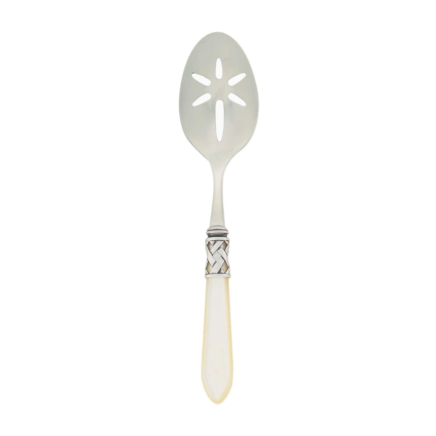The Aladdin Antique Slotted Serving Spoon features elegant pearlized handles with the strength of high-grade acrylic and 18/10 stainless steel. This piece is also available in our brilliant finish.