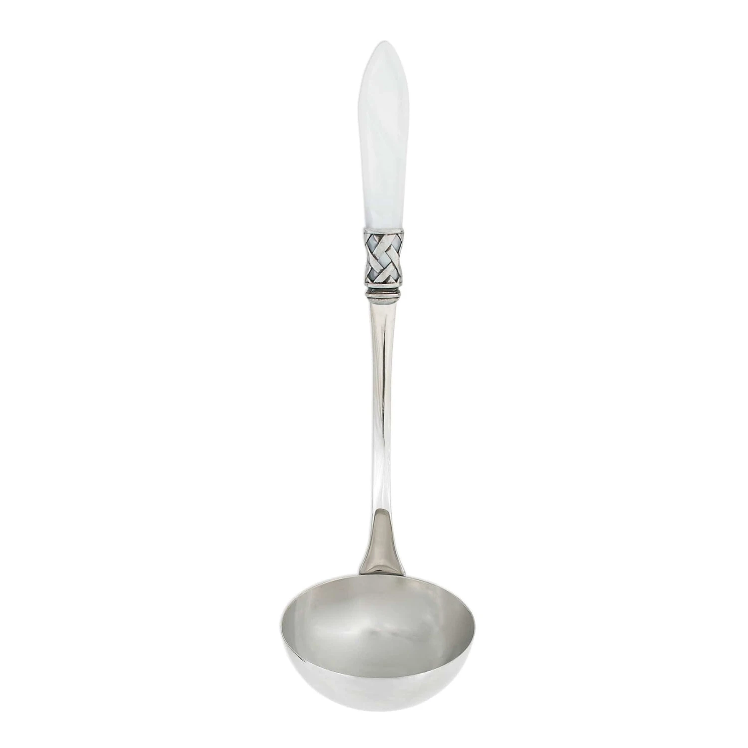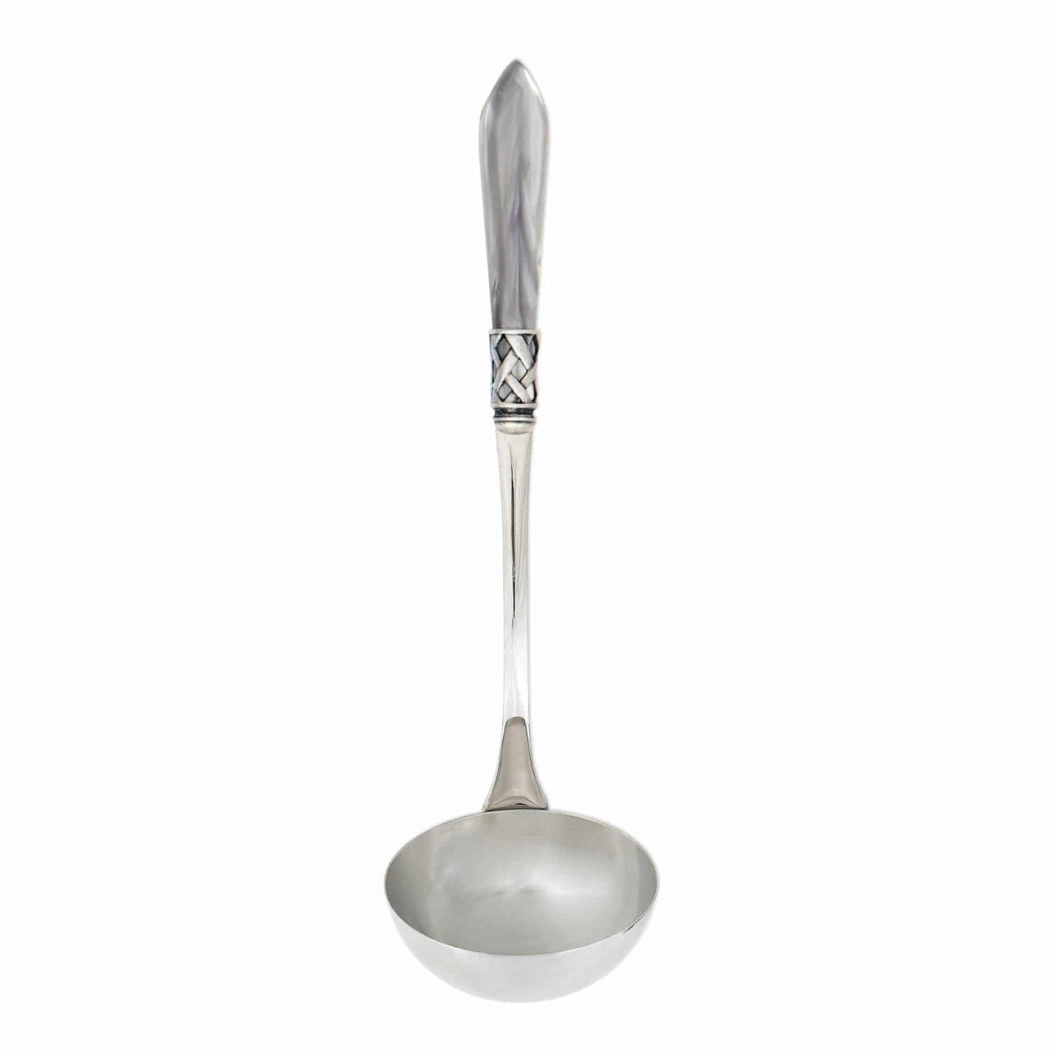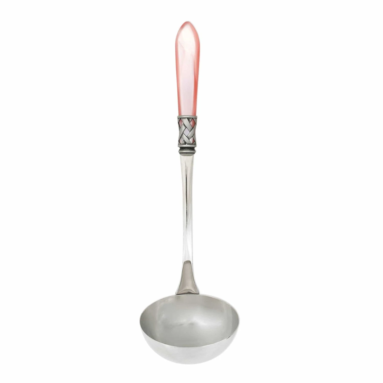 The Aladdin Antique Soup Ladle features elegant pearlized handles with the strength of high-grade acrylic and 18/10 stainless steel. This piece is also available in our brilliant finish.