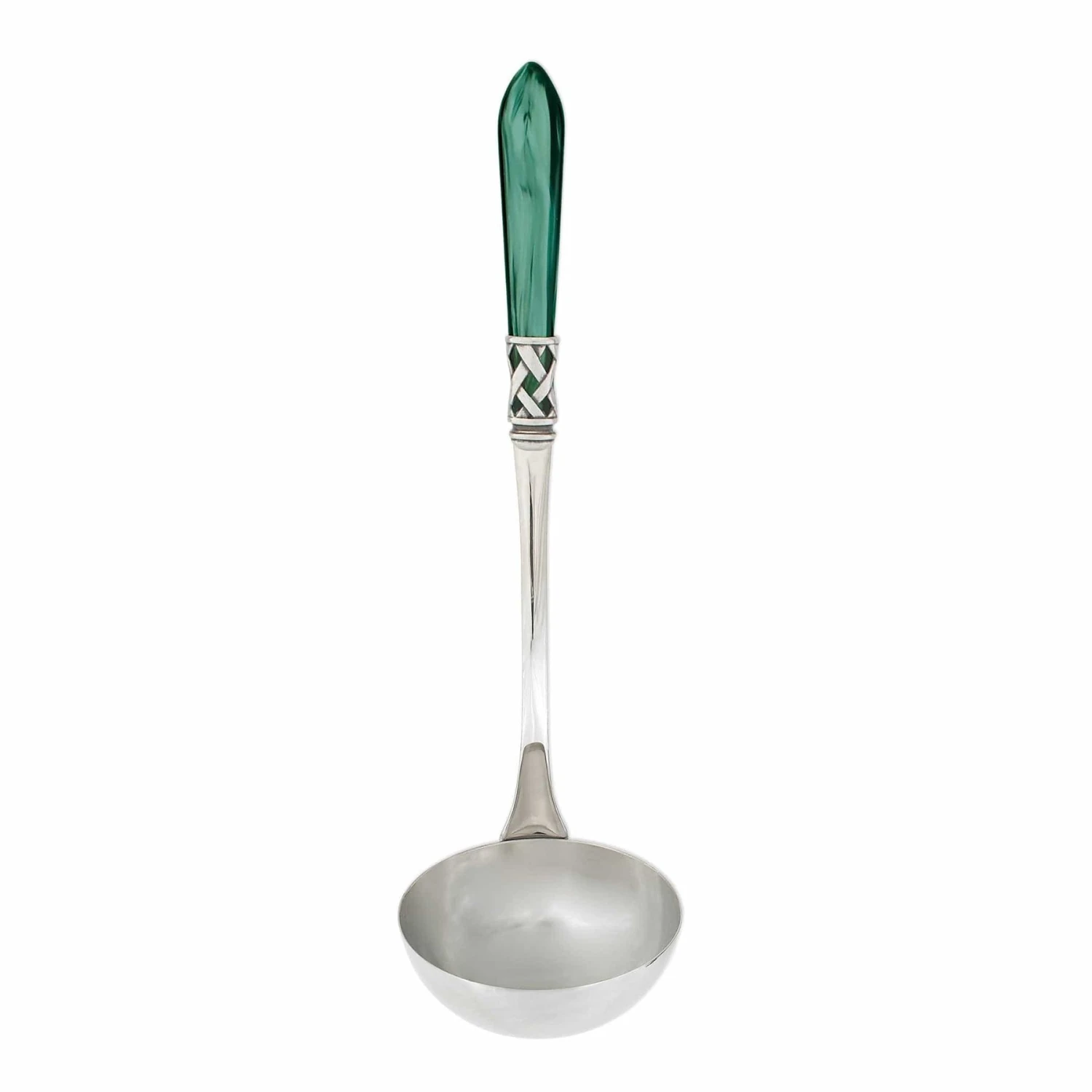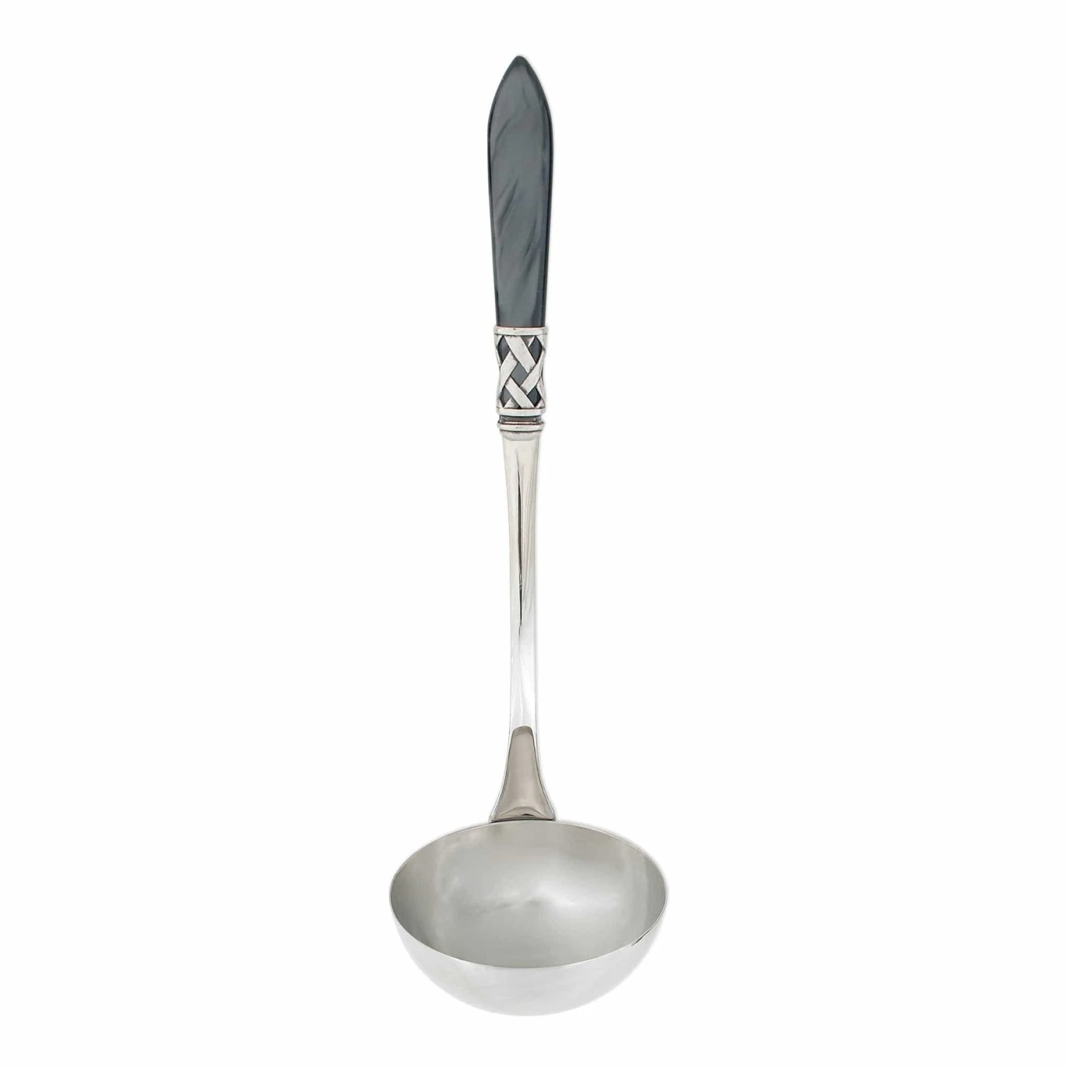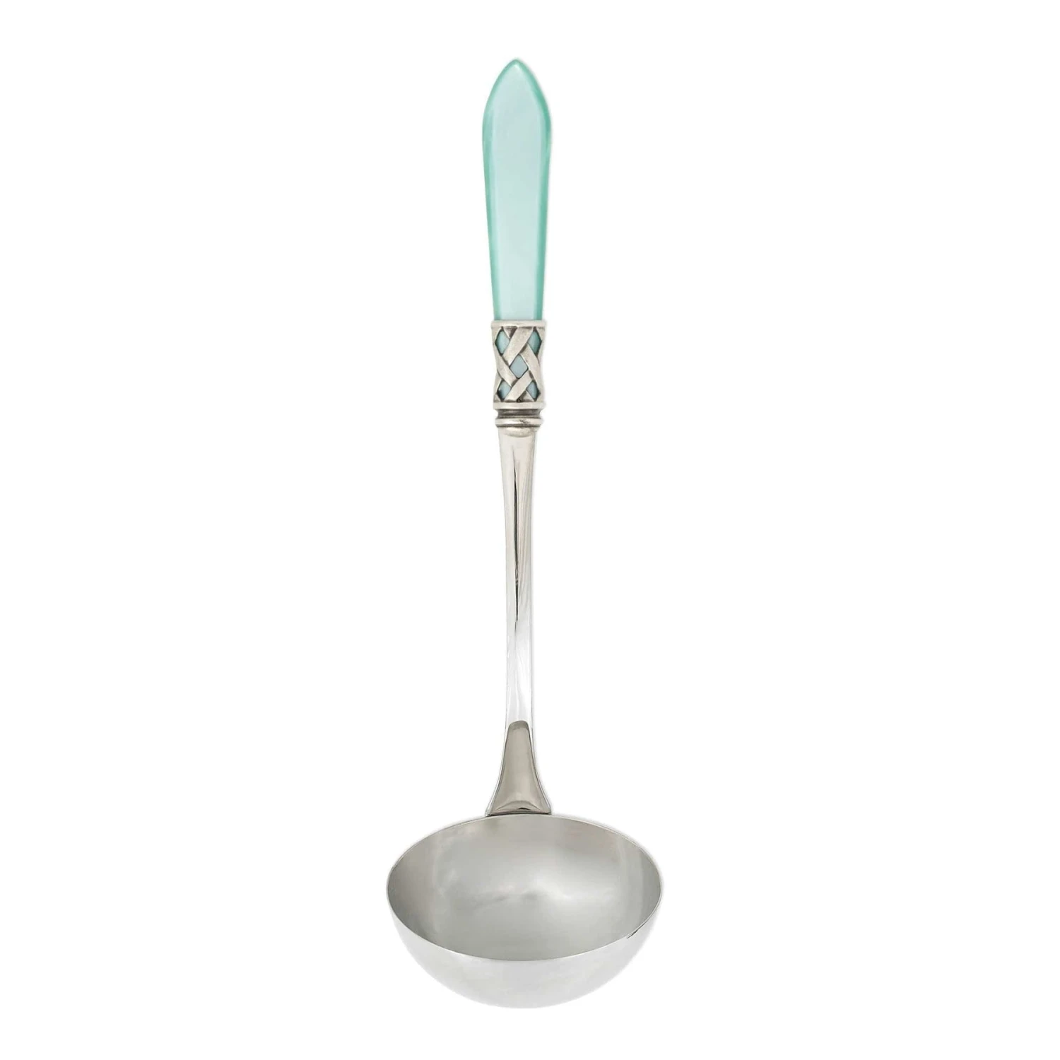 The Aladdin Antique Soup Ladle features elegant pearlized handles with the strength of high-grade acrylic and 18/10 stainless steel. This piece is also available in our brilliant finish.