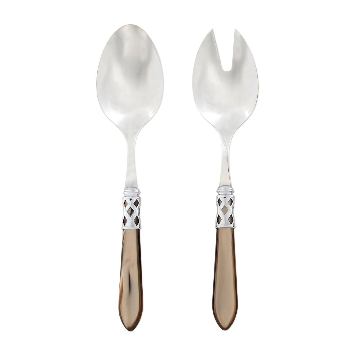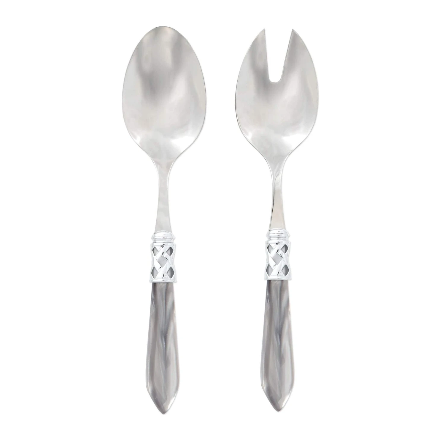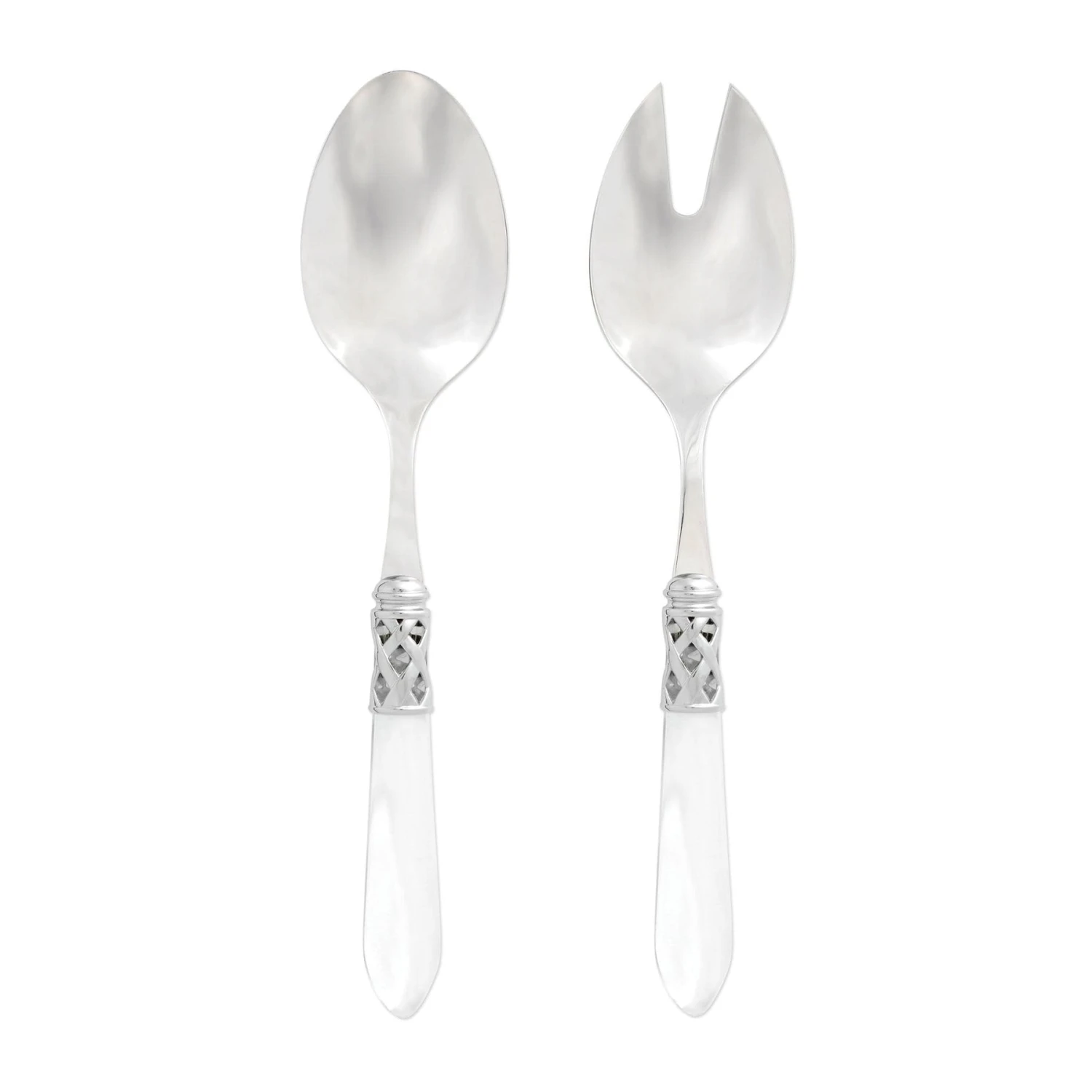 The Aladdin Brilliant Salad Server Set features elegant pearlized handles with the strength of high-grade acrylic and 18/10 stainless steel. This piece is also available in our antique finish.