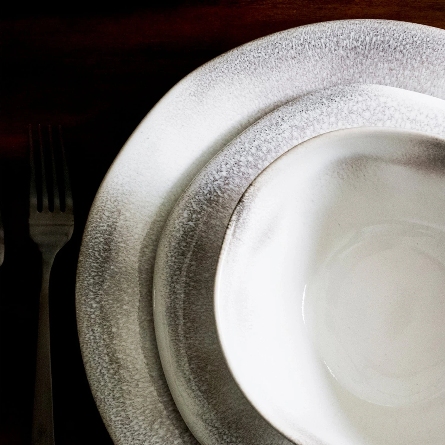 Replete with intrigue and sophistication, the Aurora Ash Dinner Plate adds a hint of mystery to your everyday dining with warm, charcoal tones. Handcrafted of durable stoneware in Italy, Aurora is the unique result of a beautiful collaboration with maestro artisan, Francesco Venzo.
