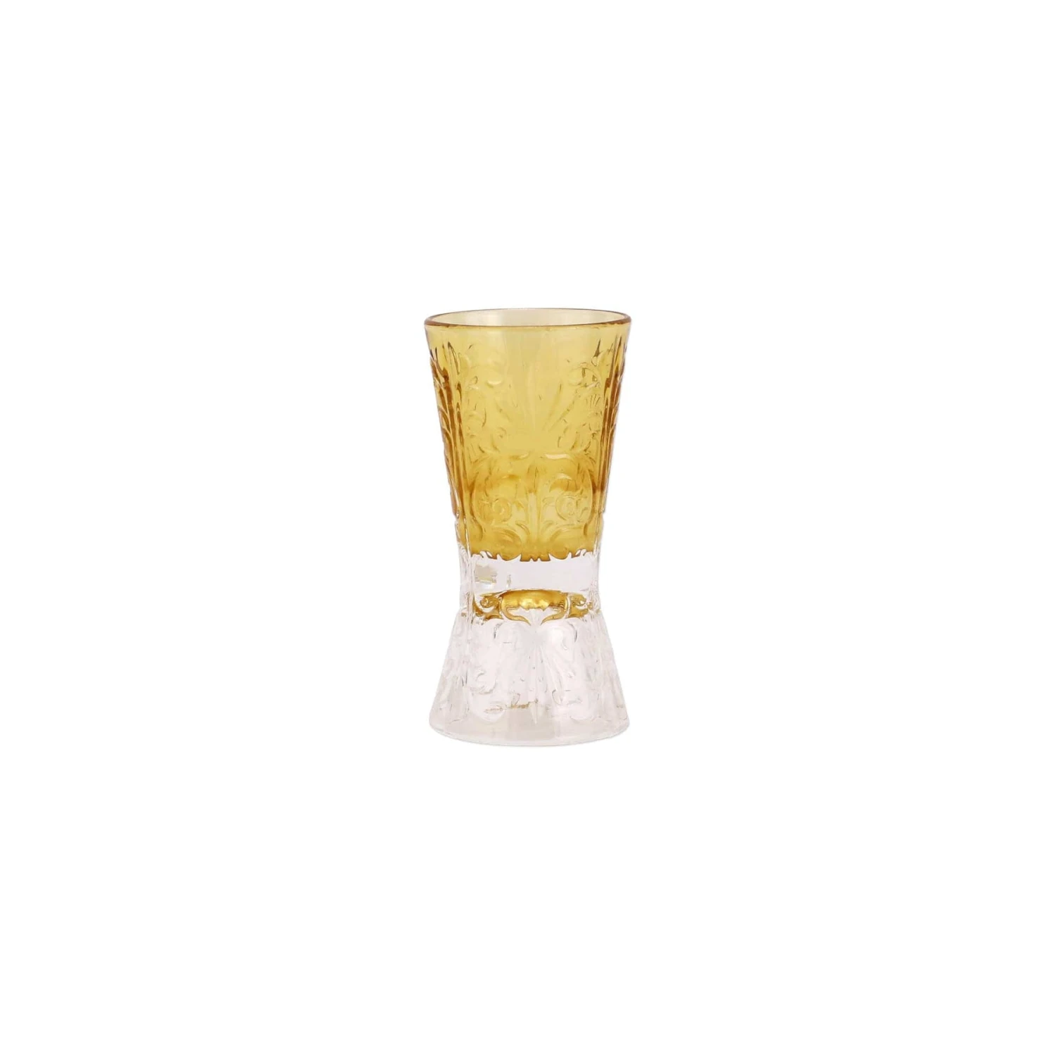 The artful etchings, stately shapes, and rich color of Barocco Amber Liquor Glass honor Italy’s 17th century Baroque period and bring a gracious grandeur to your gatherings.