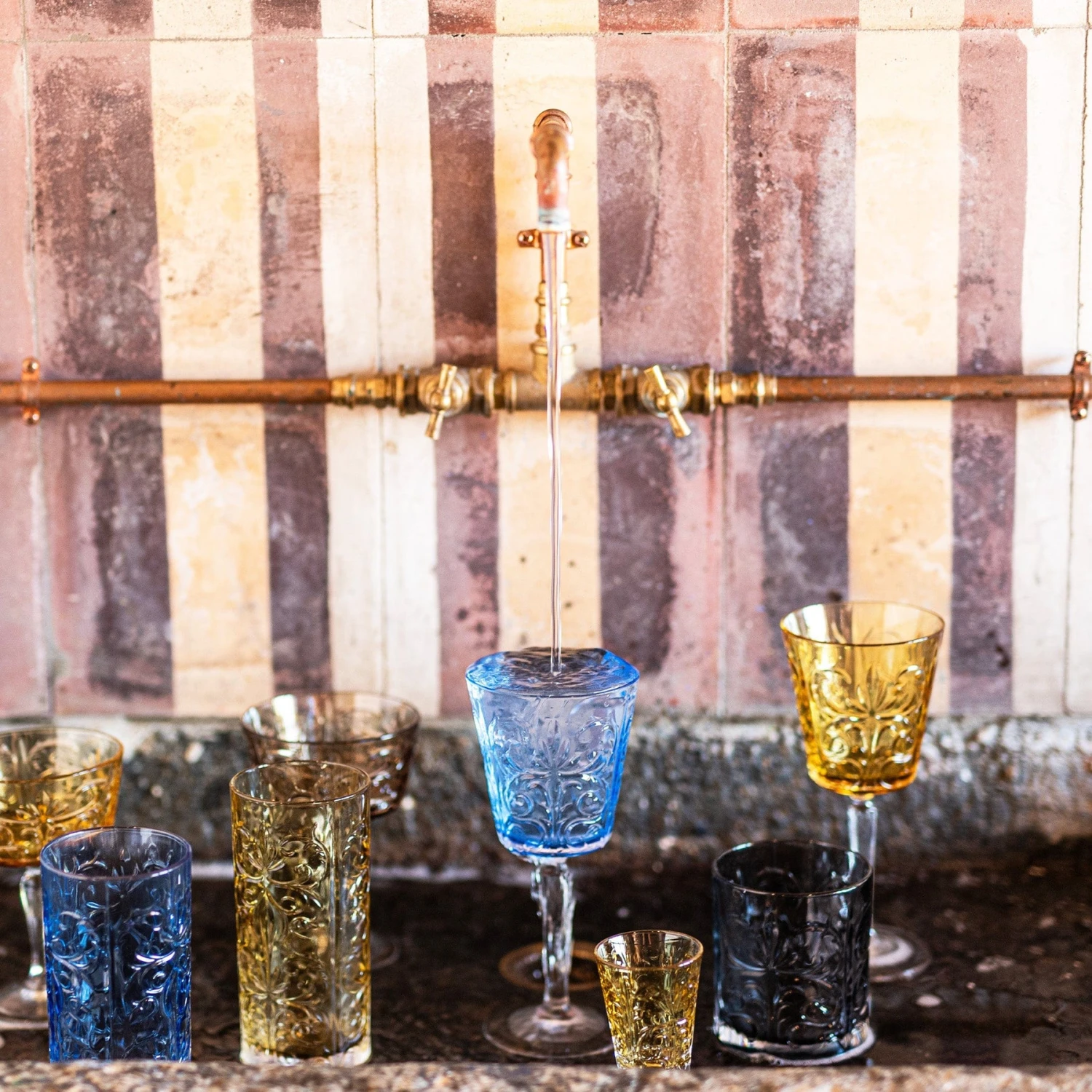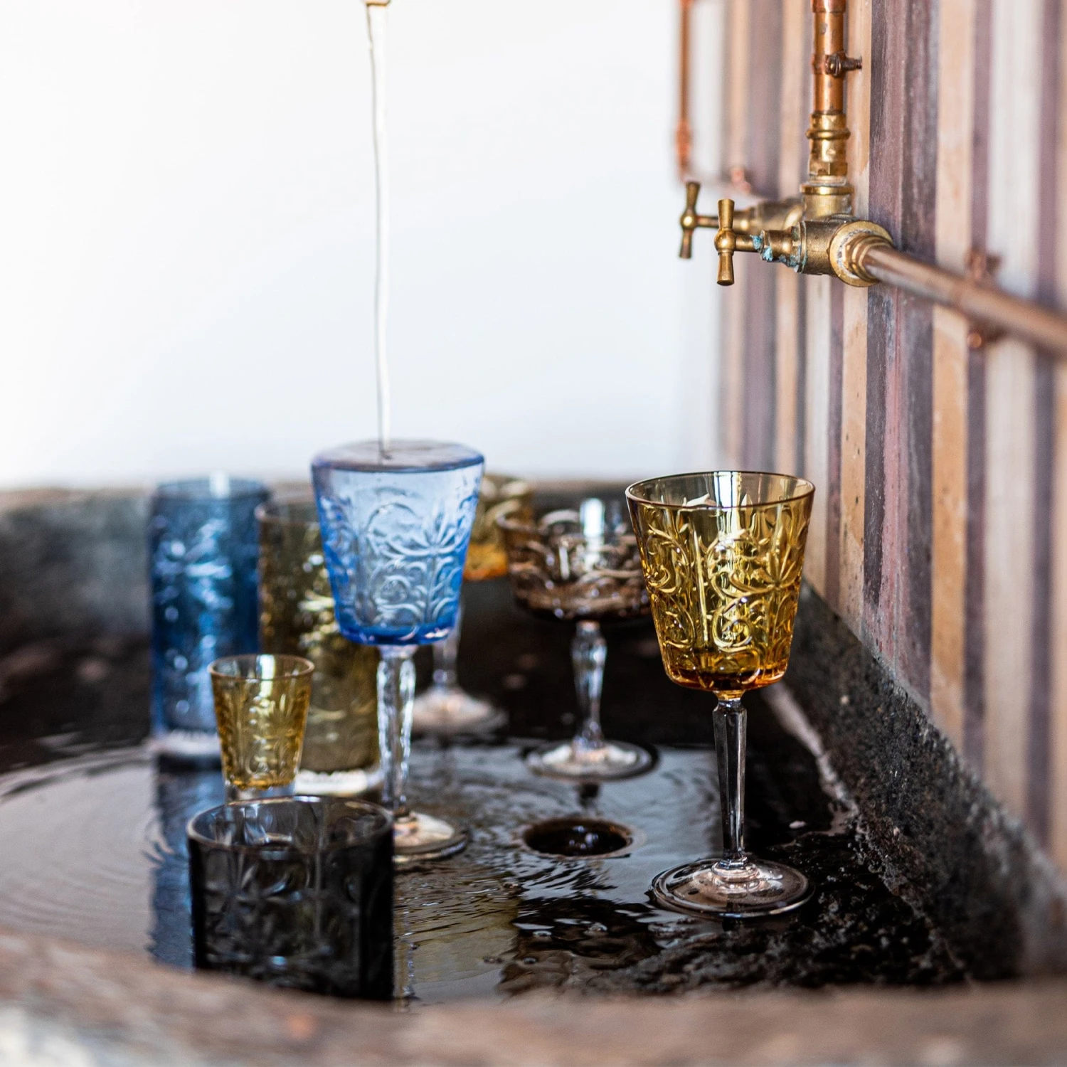 The artful etchings, stately shapes, and rich color of Barocco Amber Wine Glass honor Italy’s 17th century Baroque period and bring a gracious grandeur to your gatherings.