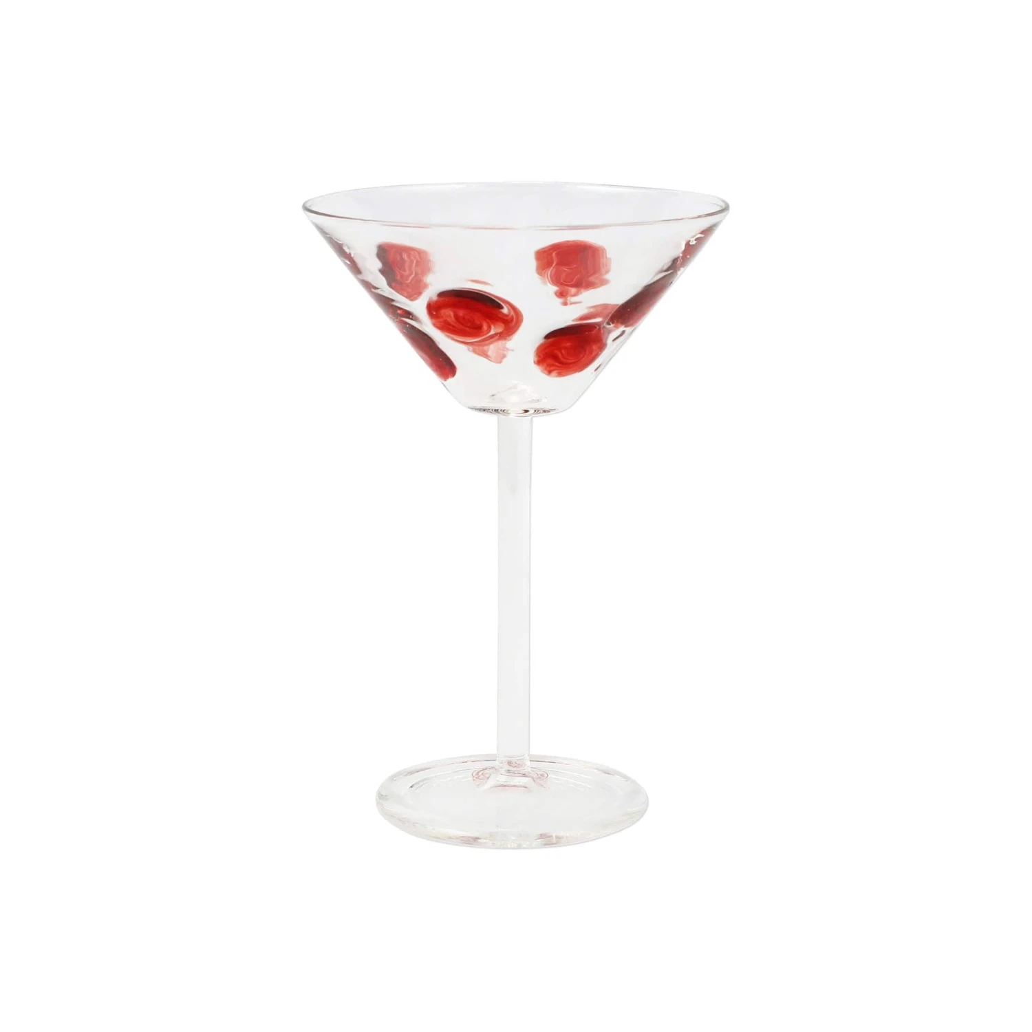 Dress up your cocktail in the Drop Martini Glass. Intricately mouthblown in Veneto, this beautiful collection brings a playful, chic touch to your favorite barware assortment.