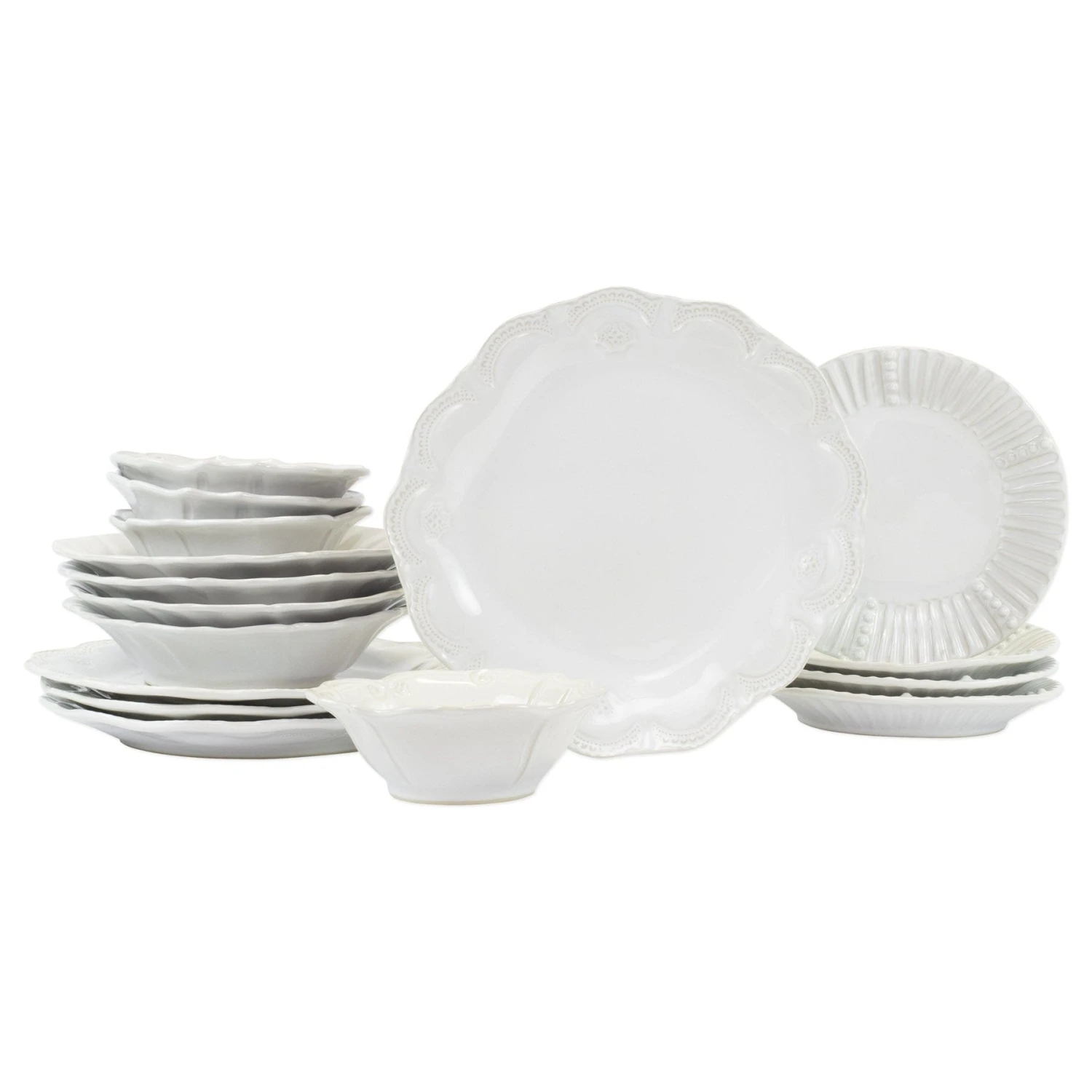 Italian for enchantment, Incanto Stone is inspired by Italy’s art, landscape, and Venetian history. The soft ripples of the Adriatic Sea, the columns of the Palladian villas along the Brenta River, the beautiful lace of Venice’s Burano Island, and 17th century baroque architecture are reimagined in the dinnerware’s design, and the result is a captivating collection made to be mixed and matched. The Incanto Stone Assorted Sixteen-Piece Place Setting includes four assorted dinner plates, four assorted salad plates, four assorted pasta bowls, and four assorted cereal bowls.