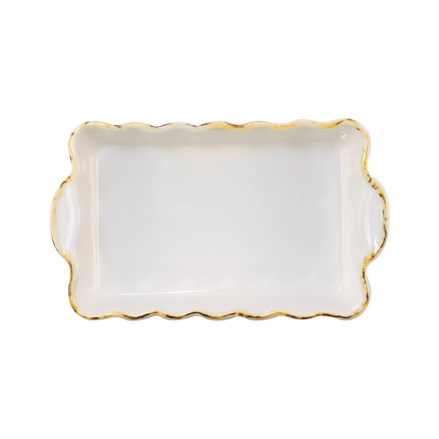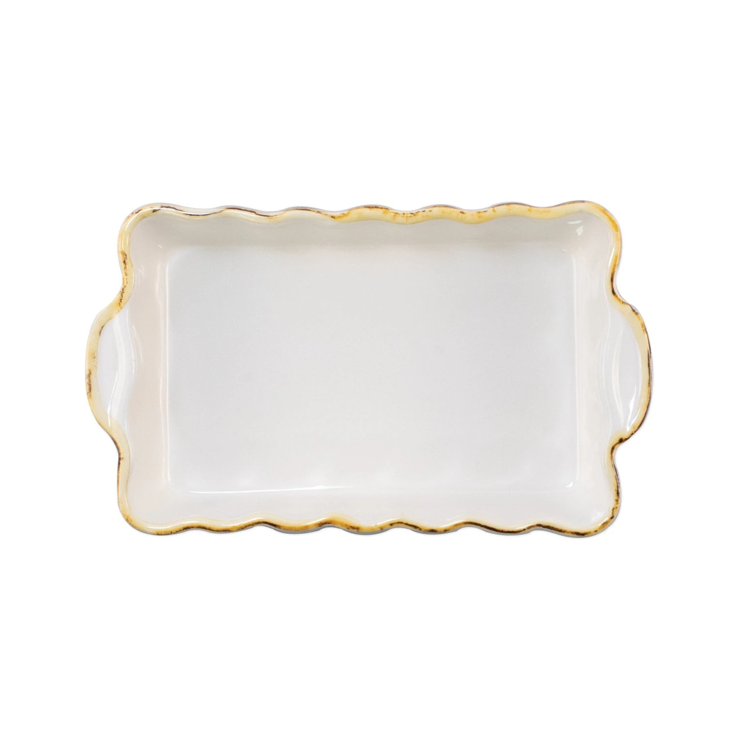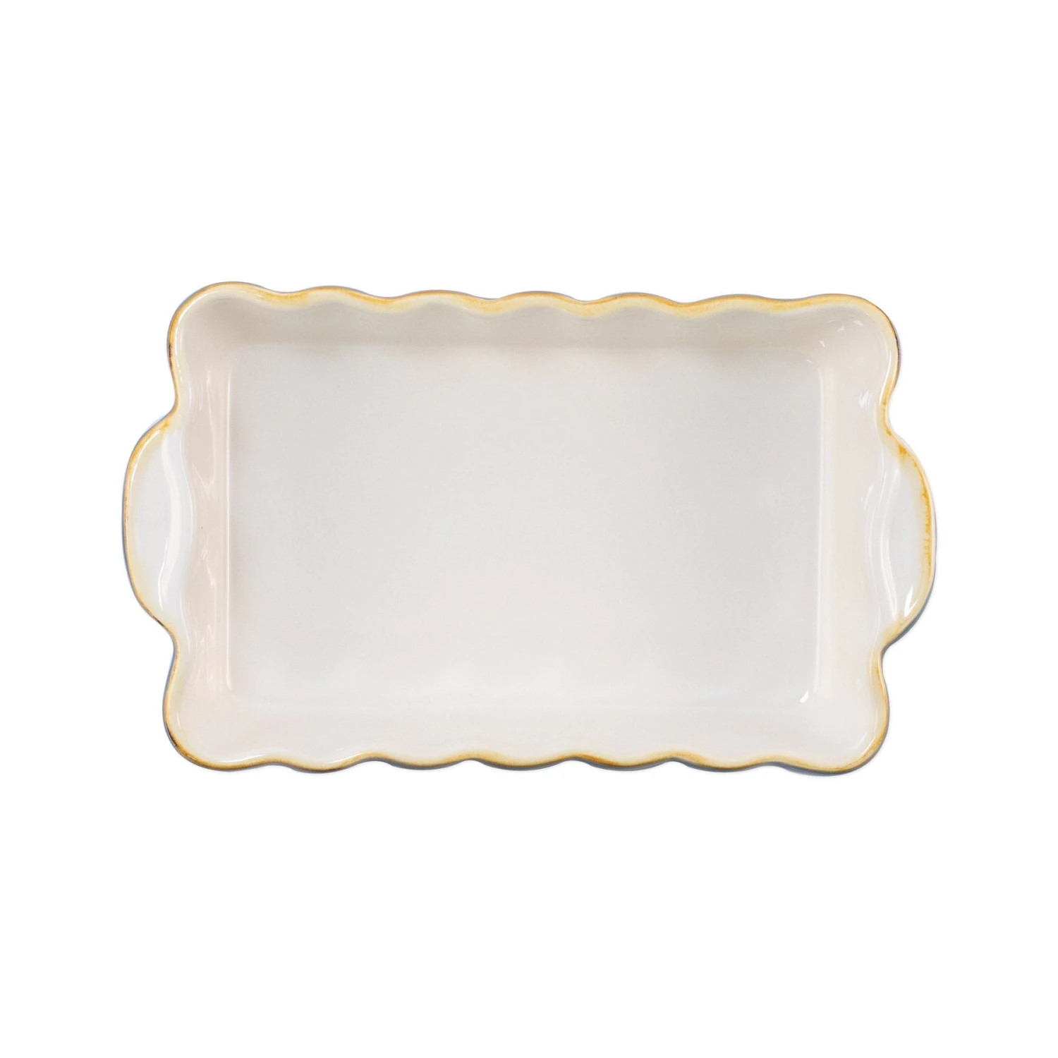 Featuring scalloped edges and a beautiful, bright hue, the Italian Bakers White Rectangular Baker is part of VIETRI’s newest line of bakeware. Handcrafted of Italian stoneware in Umbria, this unique size and fun shape is perfect for all gatherings.
