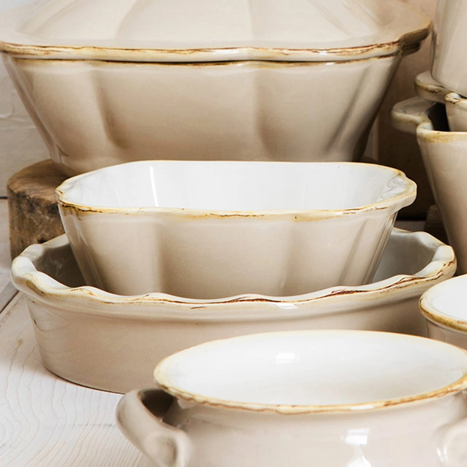 Featuring scalloped edges and an elegant hue, the Italian Bakers Small Square Baker is part of VIETRI’s newest line of bakeware. Handcrafted of Italian stoneware in Umbria, this unique size and fun shape is perfect for gatherings and family get-togethers.