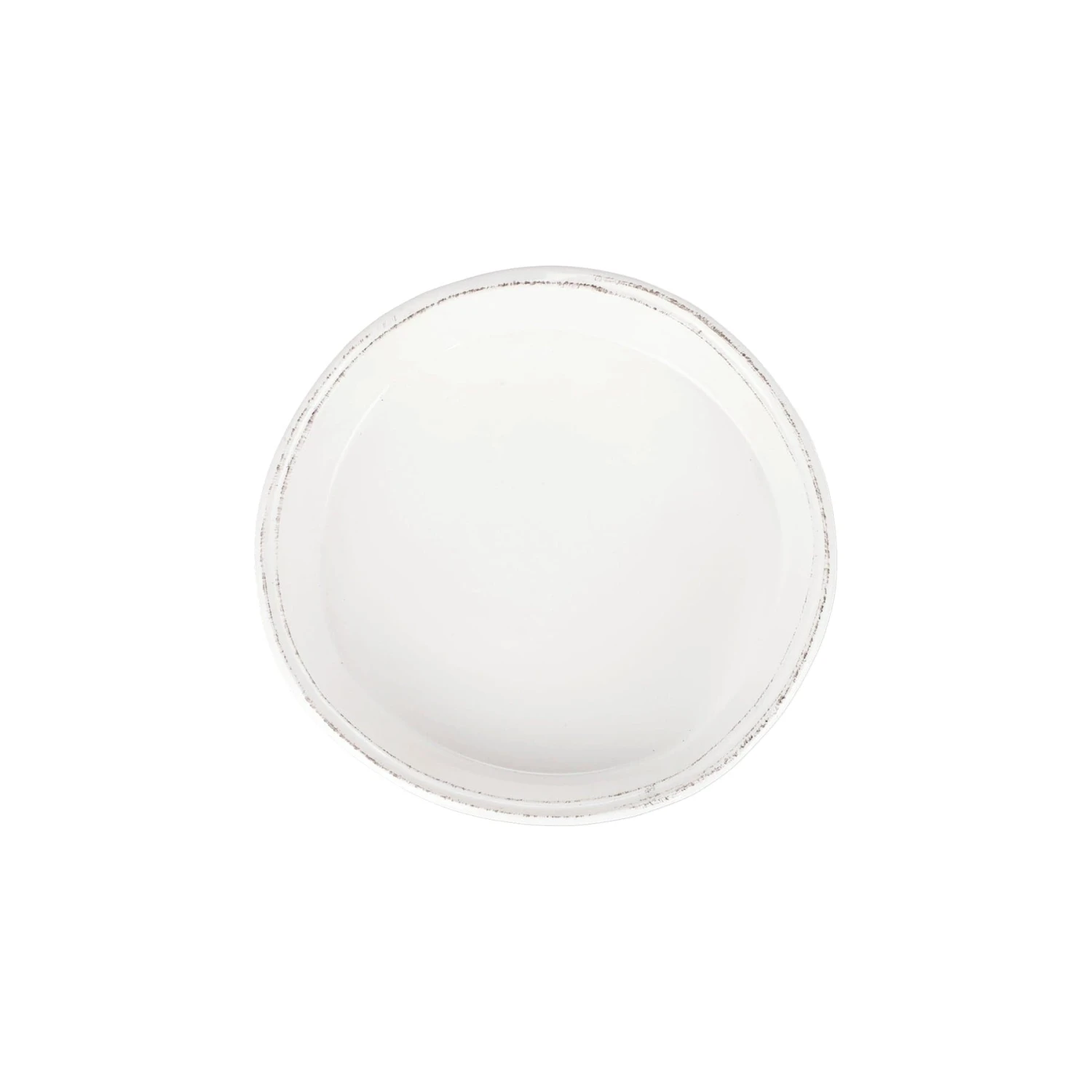 Beloved for its sophisticated simplicity, versatility, and durability, Lastra is our bestselling collection. The understated elegance, clean lines, and unique shape of the Lastra White Pie Dish make it a timeless serving piece for your home. Lastra’s design was inspired by the circular wooden slabs used for centuries to create the outer mold in cheesemaking throughout Italy. When fashioned together with twine, the hoop was left with a slight overlap to help maintain the shape of the cheese mold. Maestro molder Stefano Roselli incorporates the overlapping detail into the entire design, from its foot to its rim. A dark dusting on the edges of each piece suggests the ash that was used to preserve these cheeses and highlights each unique silhouette.