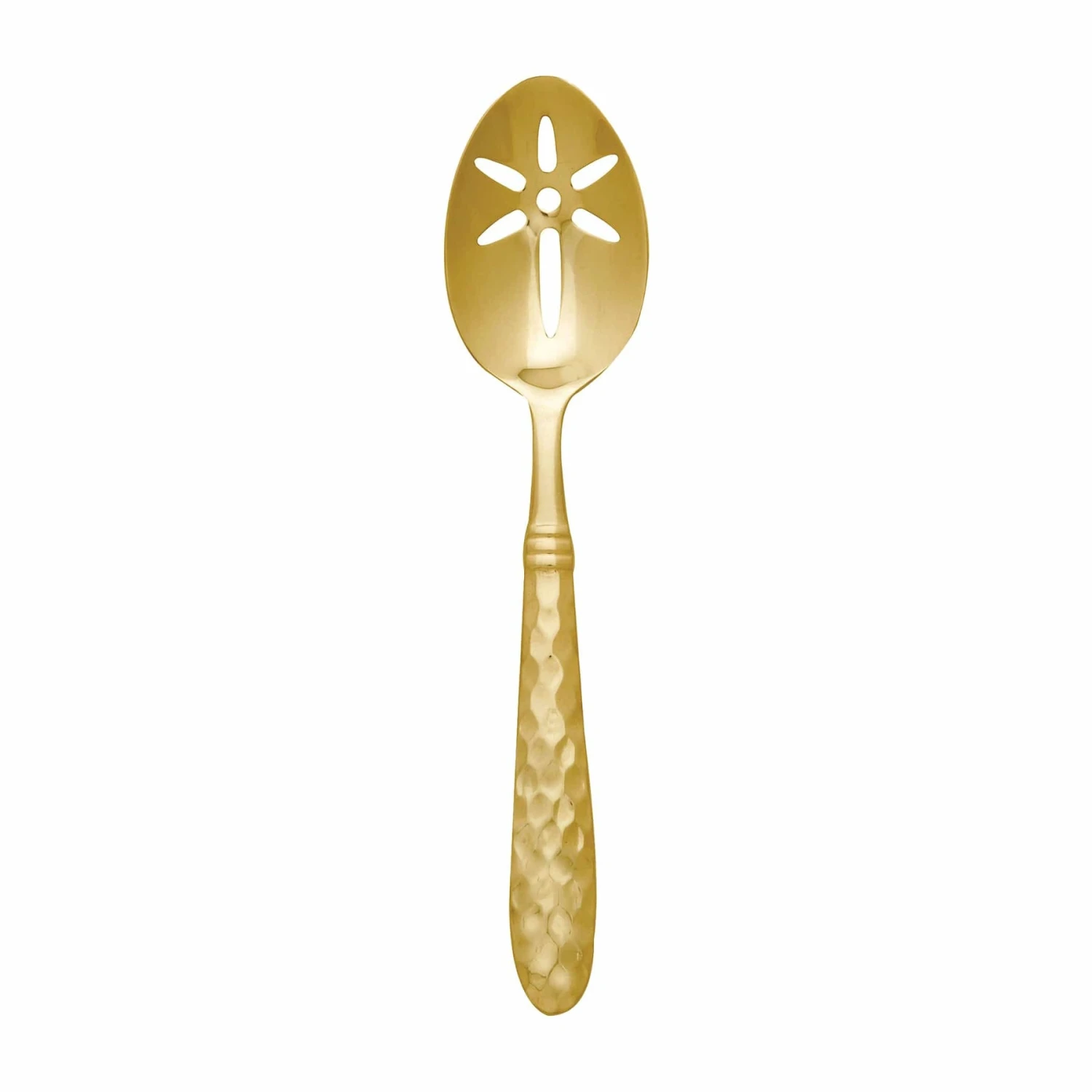 Durable and detailed, the Martellato Gold Slotted Serving Spoon is handforged by Italian artisans. The spoon has a satisfying weight in the hand and is made of 18/10 stainless steel.