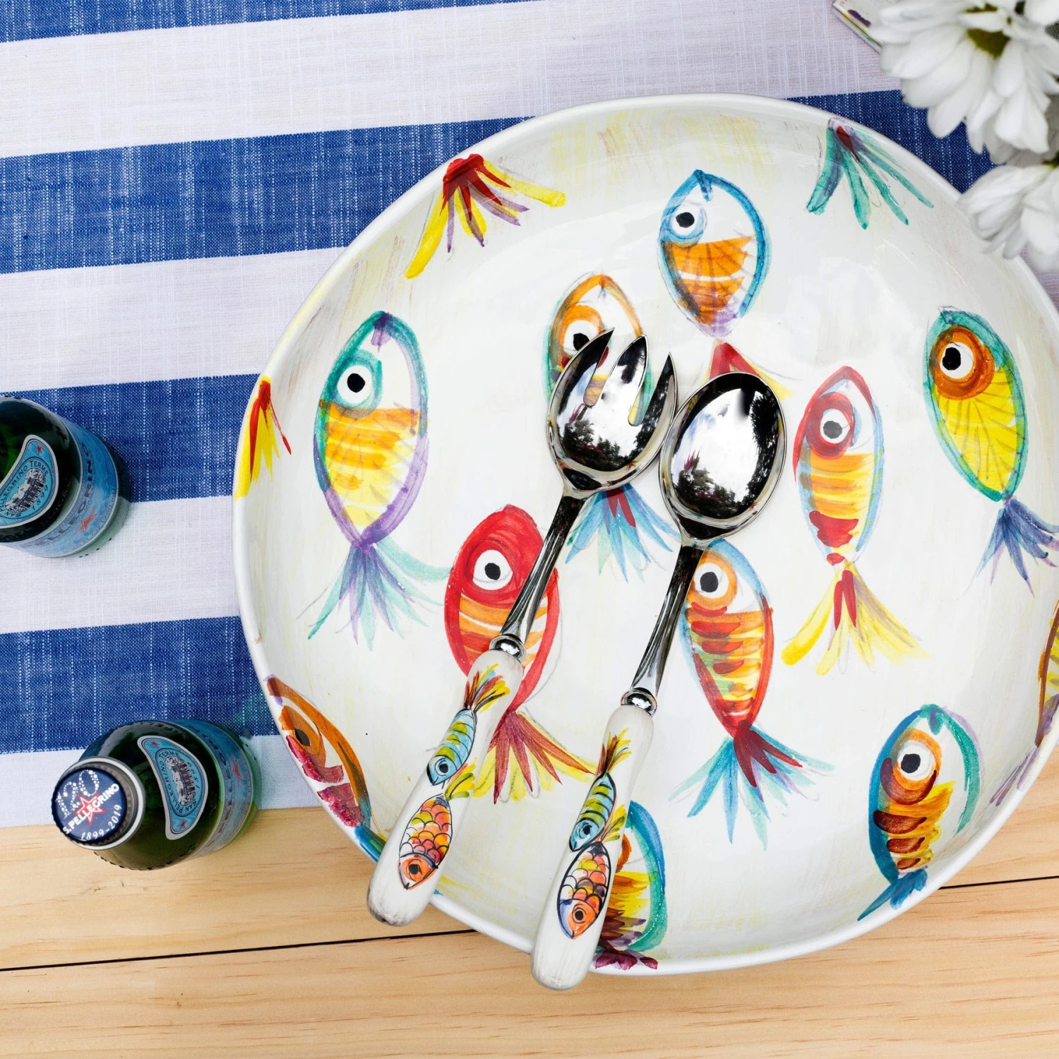 A traditional school of fish was the original inspiration for the Pesci Colorati Shallow Bowl. Our maestro artisans put their signature spin on the design with layers of color in handpainted detail to add variety and texture.