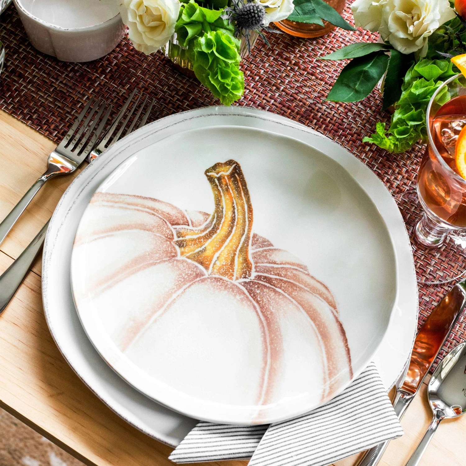 Inspired by a walk through the lively street markets in Florence, the Pumpkins Salad Plate – White Medium Pumpkin is a playful yet sophisticated take on the fall harvest.