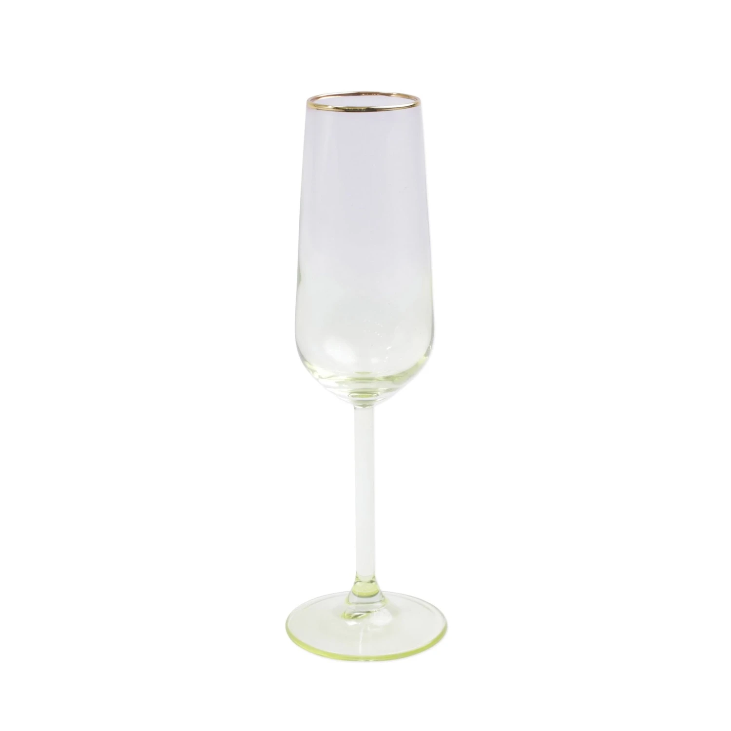 Add sparkle to any setting with a gilded gold rim and varied colored glass that refracts light on the Rainbow Assorted Champagne Flutes – Set of 4.