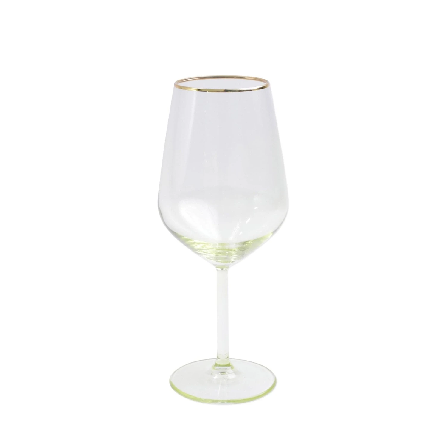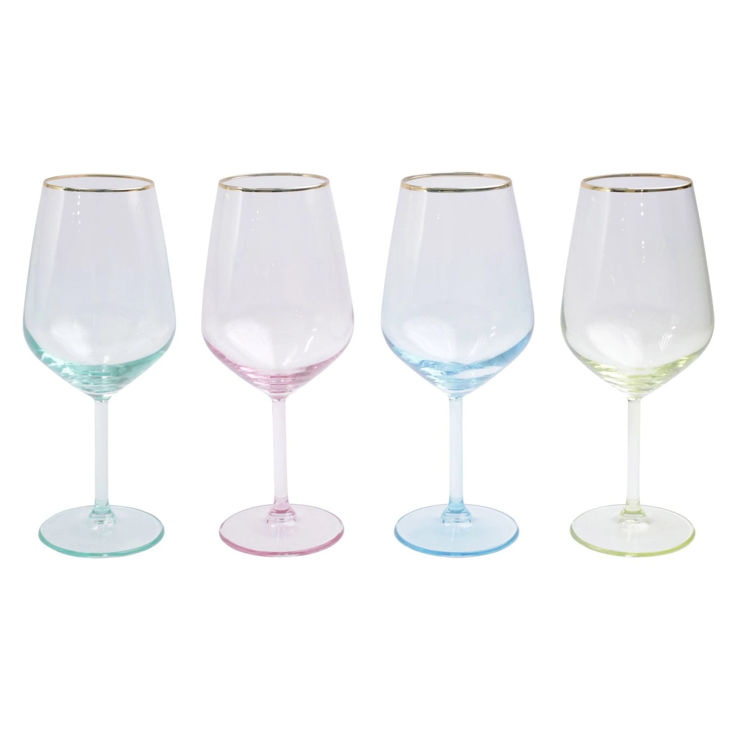 Add sparkle to any setting with a gilded gold rim and varied colored glass that refracts light on the Rainbow Assorted Wine Glasses – Set of 4.