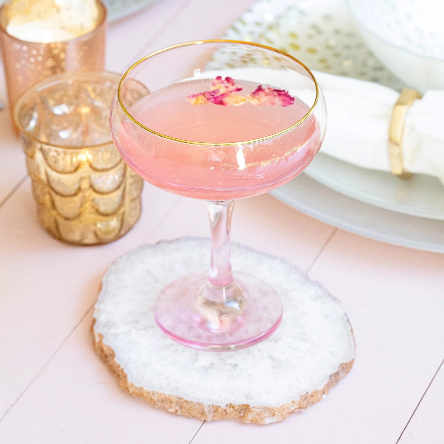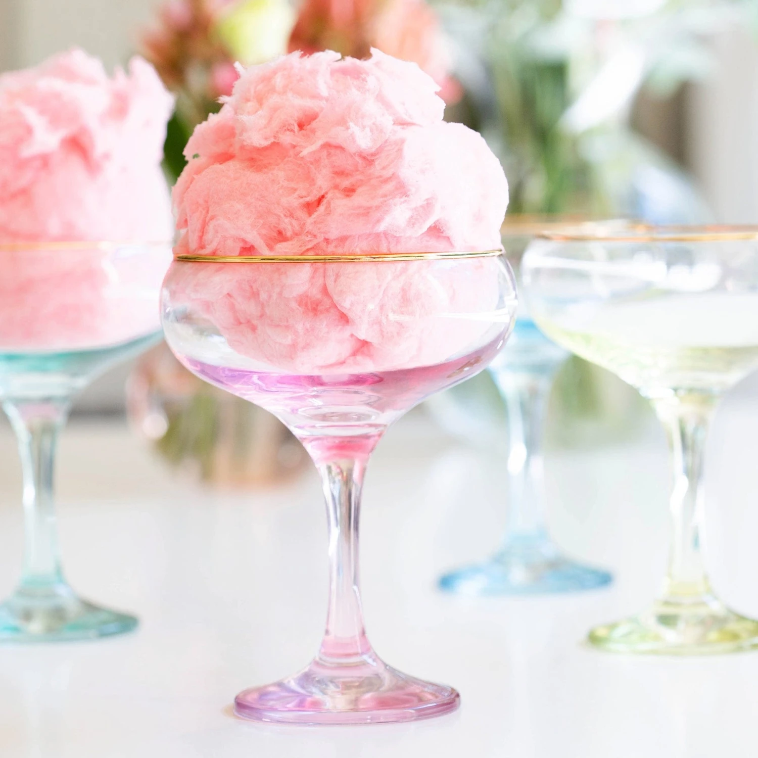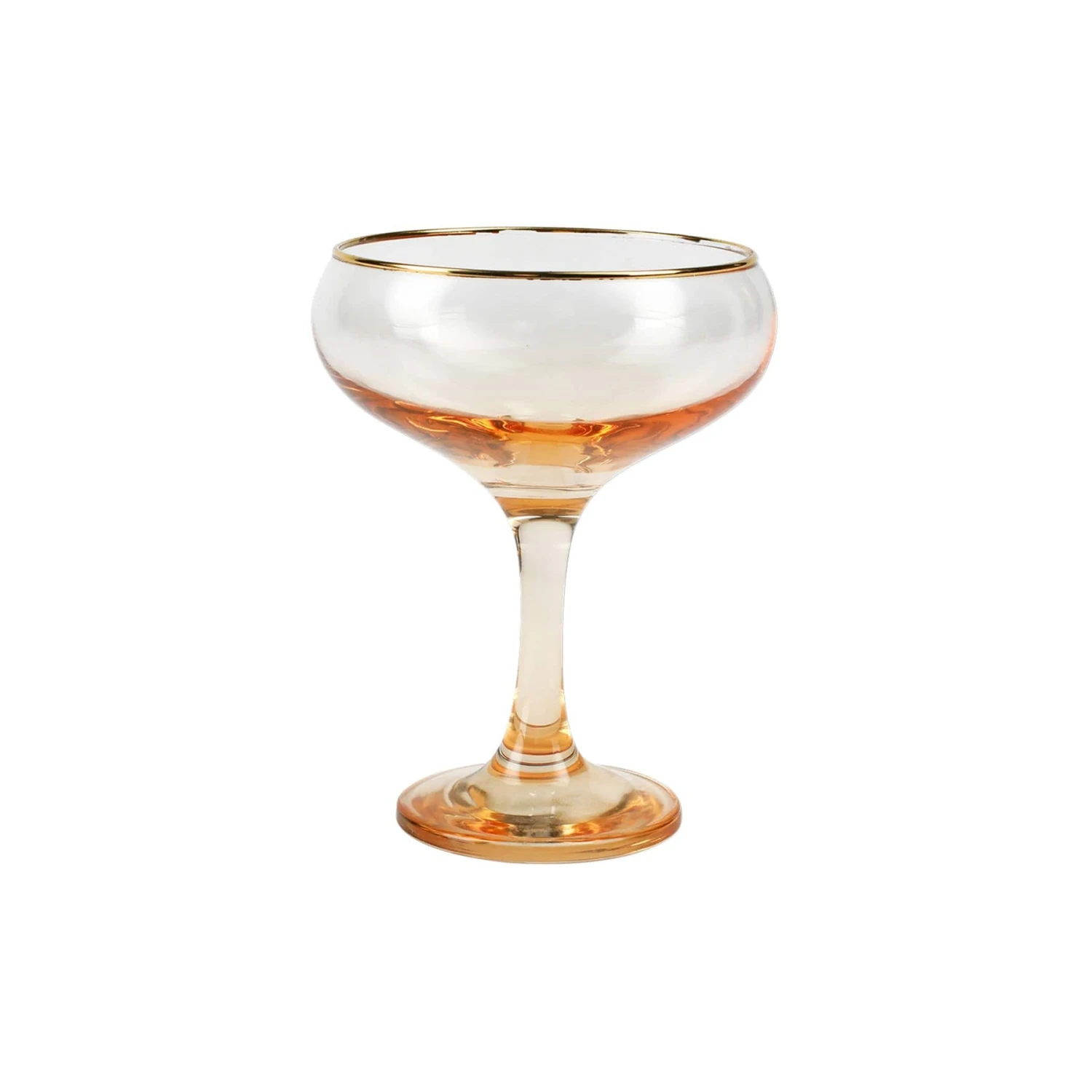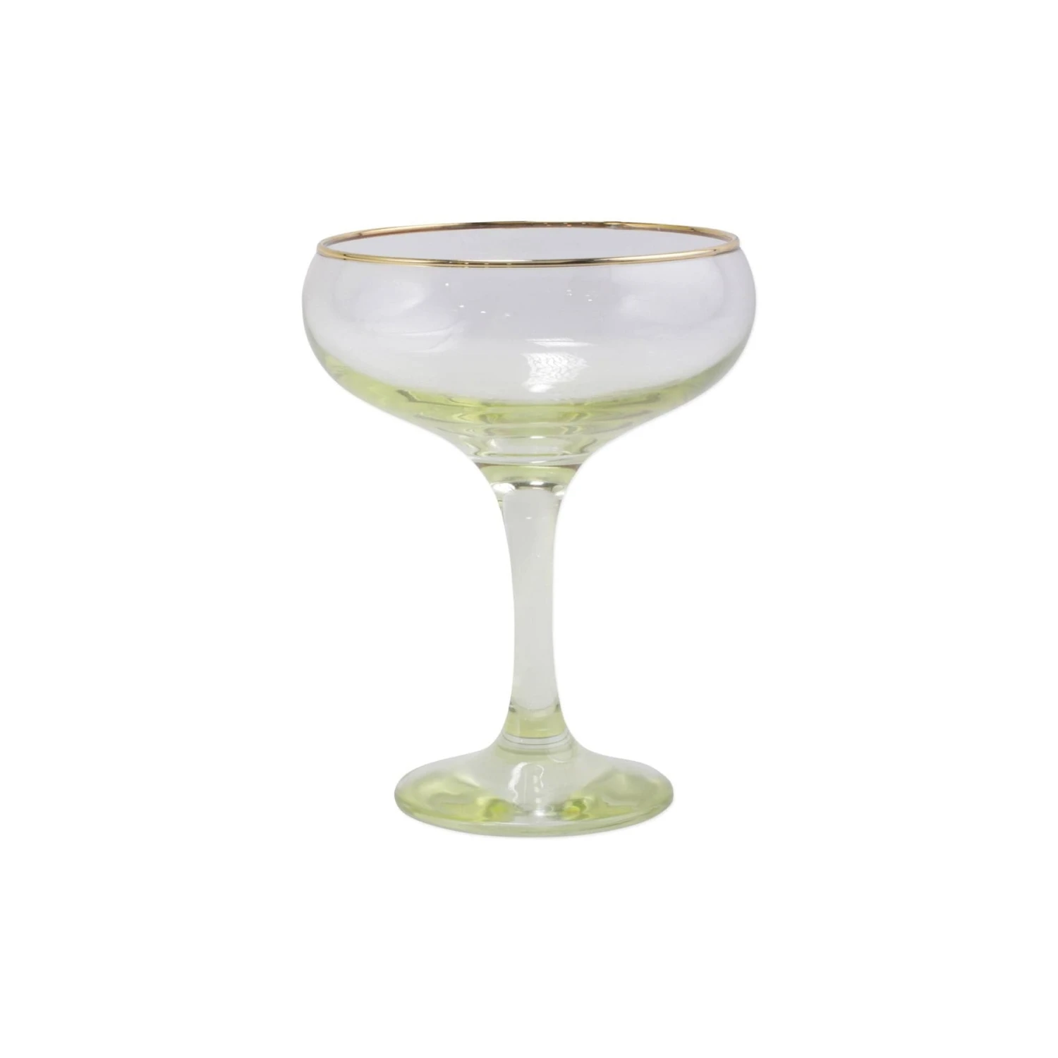 Add sparkle to any setting with a gilded gold rim and varied colored glass that refracts light on the Rainbow Coupe Champagne Glass.