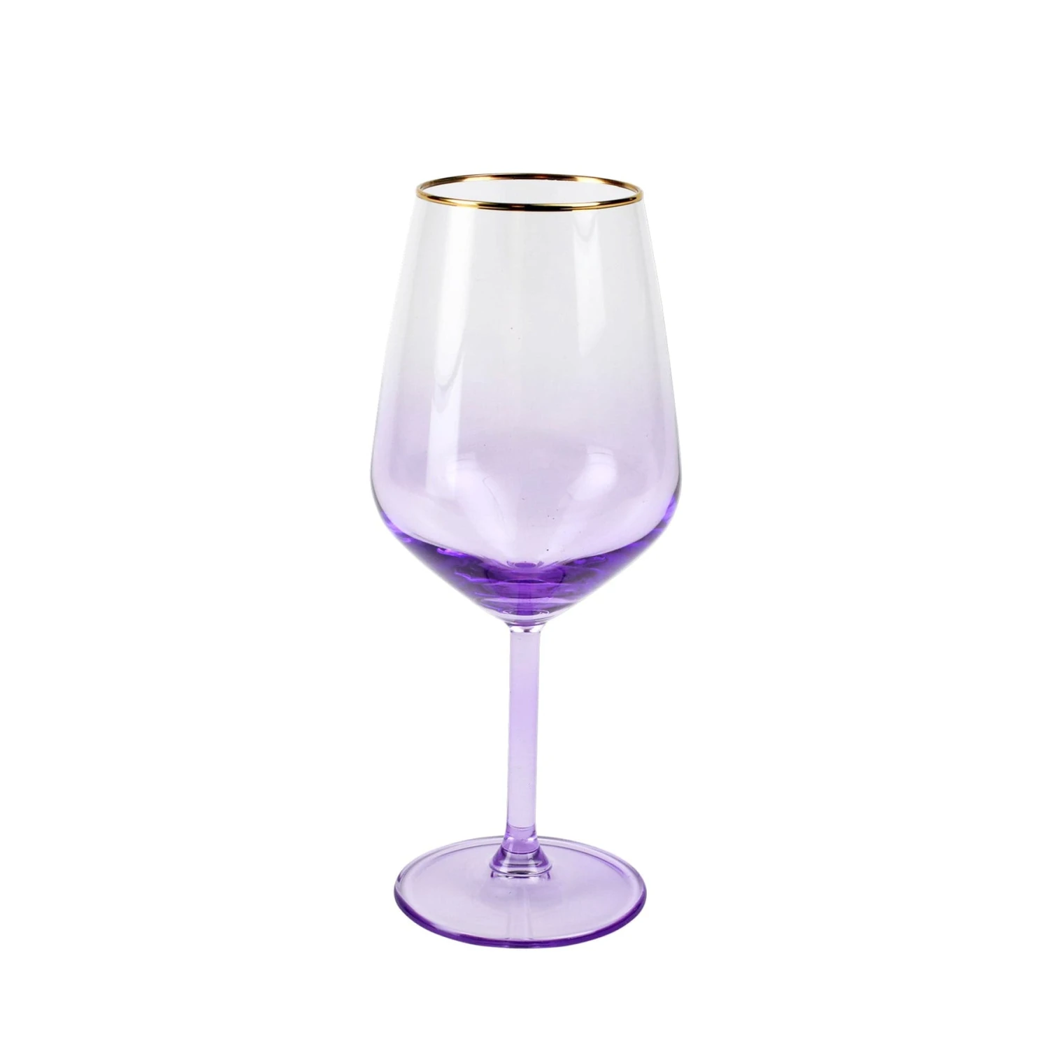 Add sparkle to any setting with a gilded gold rim and varied colored glass that refracts light on the Rainbow Wine Glass.