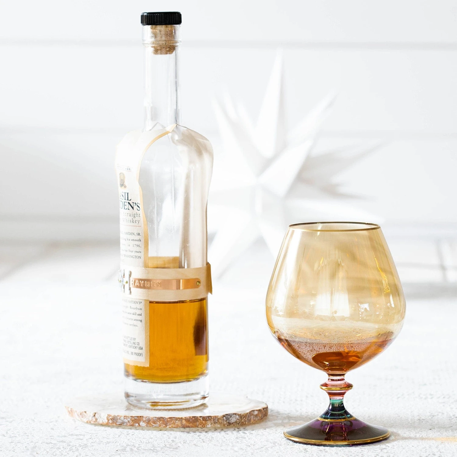 Taking its name from the Art Deco Era, referred to as Stile Liberty in Italy, the Regalia Deco Purple Brandy Snifter encompasses the colors of our Regalia drinkware to lend a complementary, modern twist to the 14-karat gold collection.