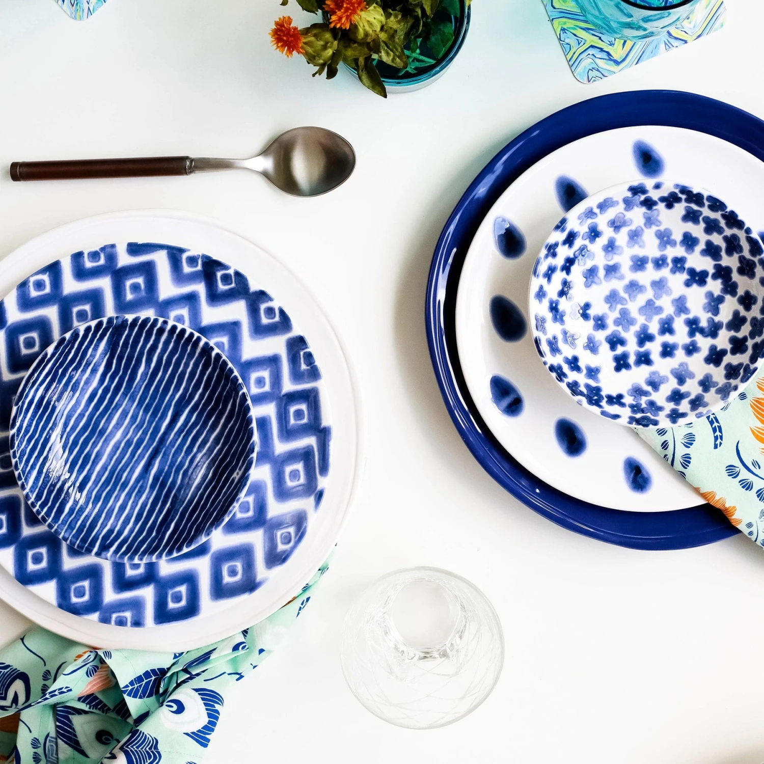 Recreate the beautiful mosaic tiles found in the Greek Isles with the Santorini Diamond Salad Plate, painted on hard ceramic in a fun blue and white pattern.